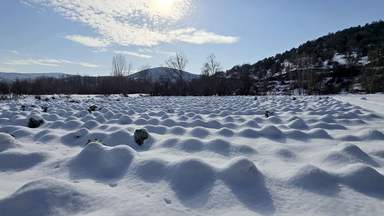 KARABÜK (AA) - Karabük'ün Eskipazar ilçesinde yetiştirilen ve lezzetiyle ön plana çıkan lahananın hasadı kar altında sürüyor.