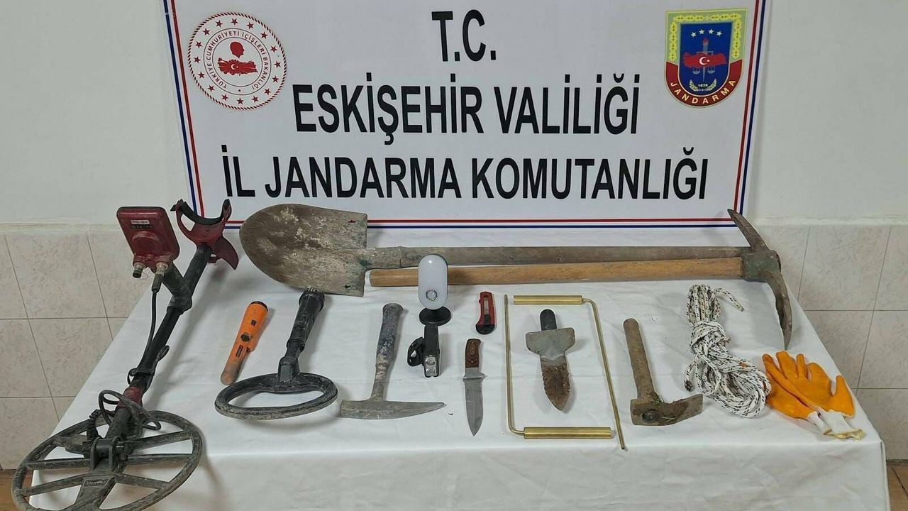 ESKİŞEHİR (AA) - Eskişehir'de kaçak kazı yaptığı tespit edilen 3 kişi, jandarma ekiplerince suçüstü yakalandı.