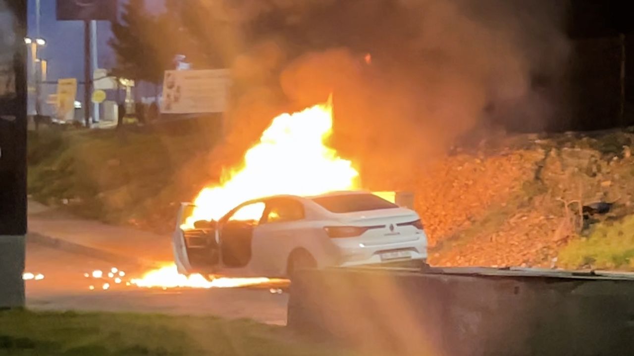 Yanan otomobilde hasar oluşurken olay cep telefonu kamerasınca kaydedildi.