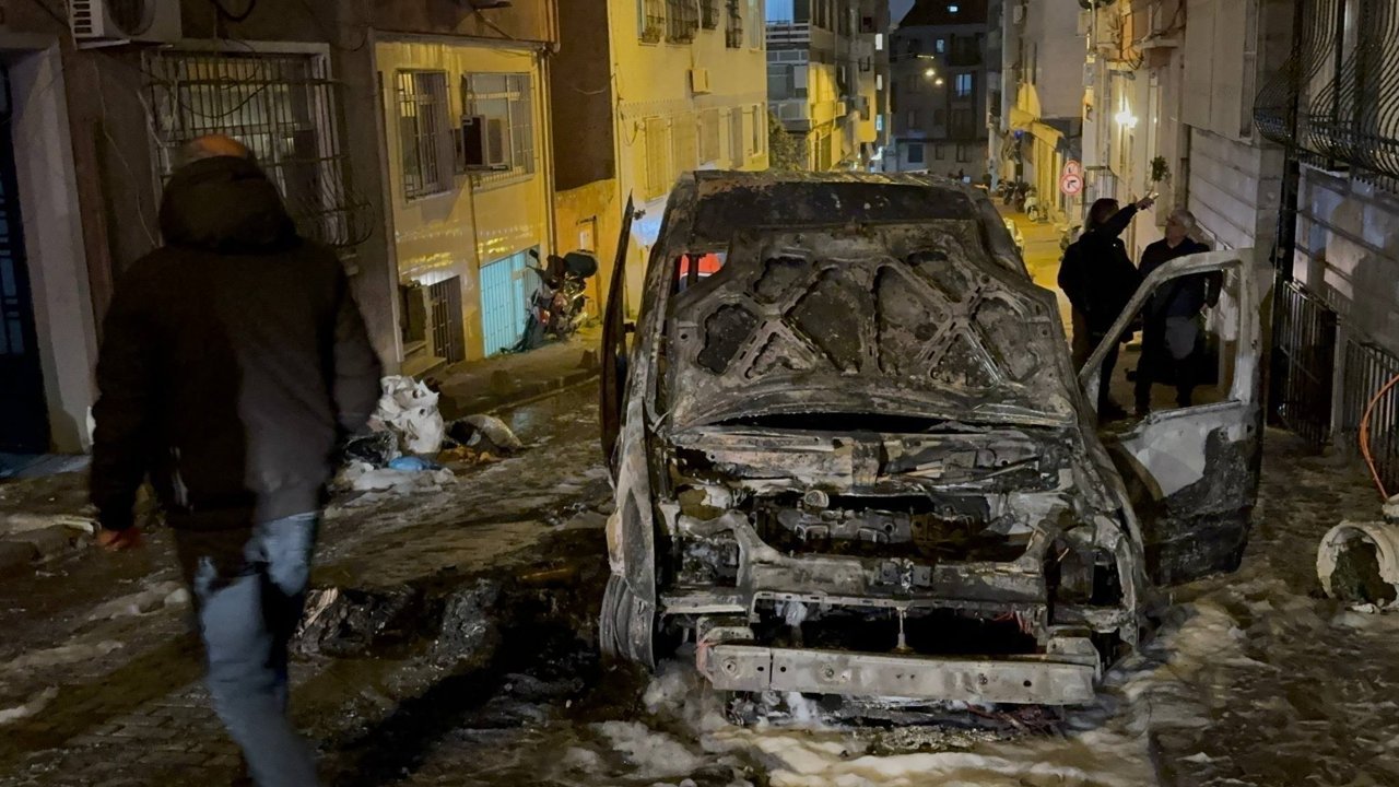 İtfaiye ekiplerinin müdahalesiyle söndürülen yangında, araç kullanılamaz hale geldi.