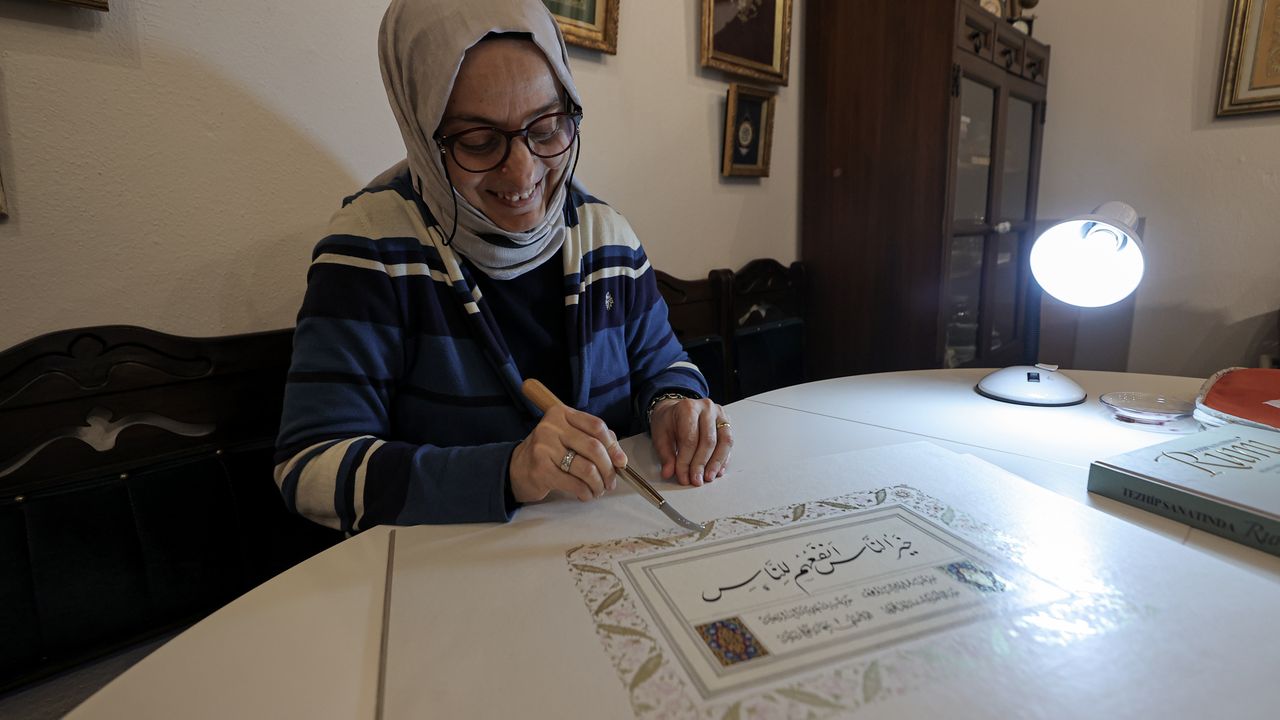BURSA (AA) - BÜŞRA NUR YILMAZ - Üniversite yıllarında bir gazetede okuduğu haberden etkilenerek adım attığı tezhip sanatında kendi gayretiyle ustalaşan 51 yaşındaki Meliha Kantarcı, bu sanatı öğrencilerine aktarmaya ve eserler üretmeye devam ediyor.