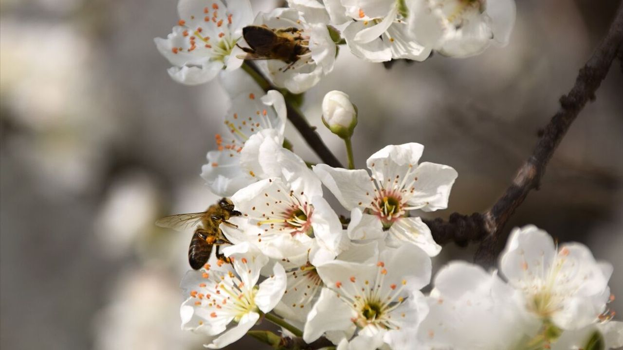 Gediz Nehri'nin suladığı ovanın Manisa'nın Turgutlu ilçesindeki bölümünde erik, kiraz, şeftali ve badem ağaçları çiçeklendi.
