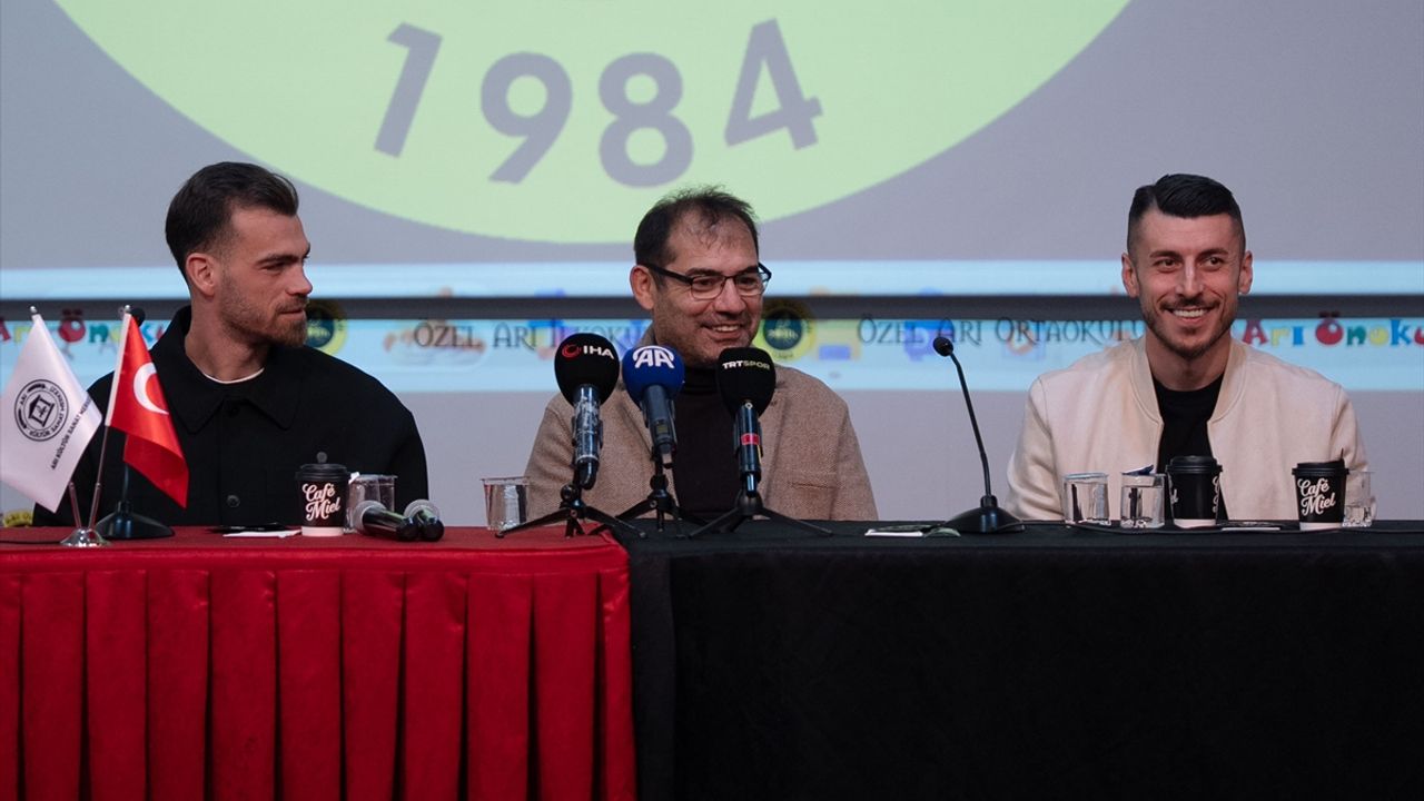 Diyadin ve kırmızı-siyahlı takım futbolcularından stoper Dimitris Goutas ile kanat oyuncusu Metehan Mimaroğlu, özel bir eğitim kurumunda lise öğrencileriyle söyleşide bir araya geldi.