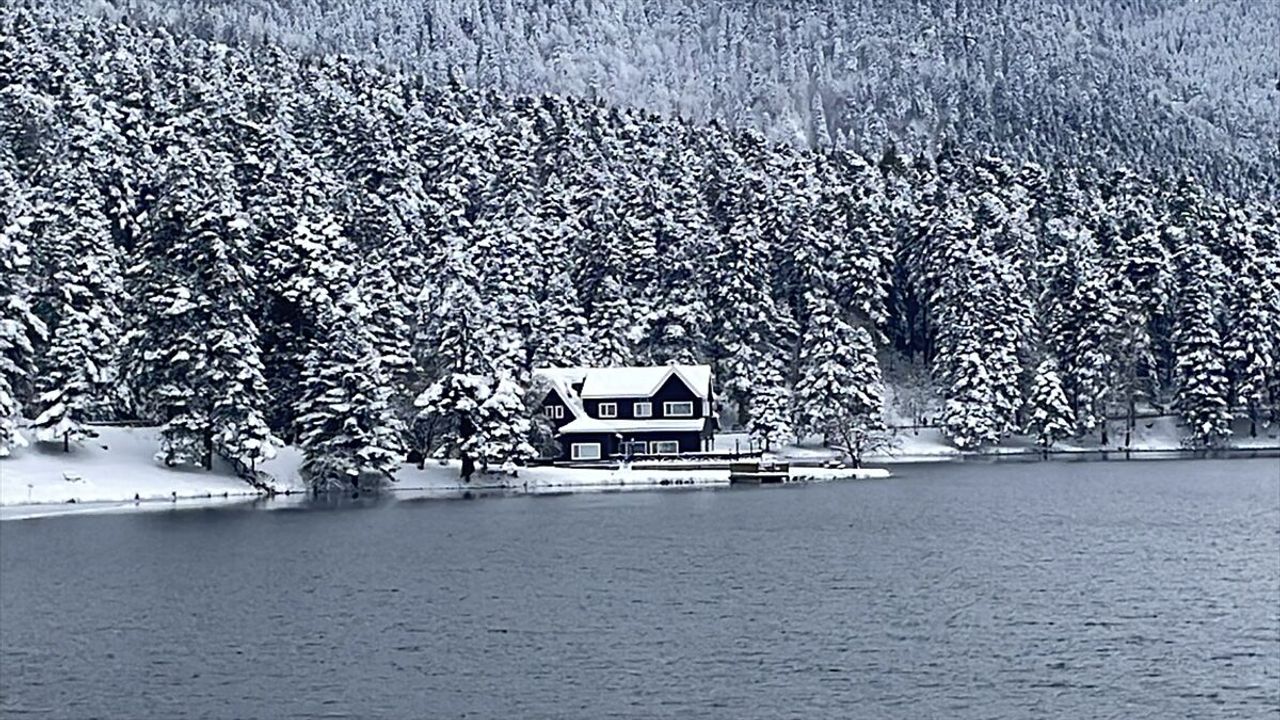 BOLU (AA) - Bolu'nun doğal güzellikleriyle ünlü Gölcük Tabiat Parkı, bölgede etkili olan kar yağışına rağmen misafirlerini ağırlıyor.