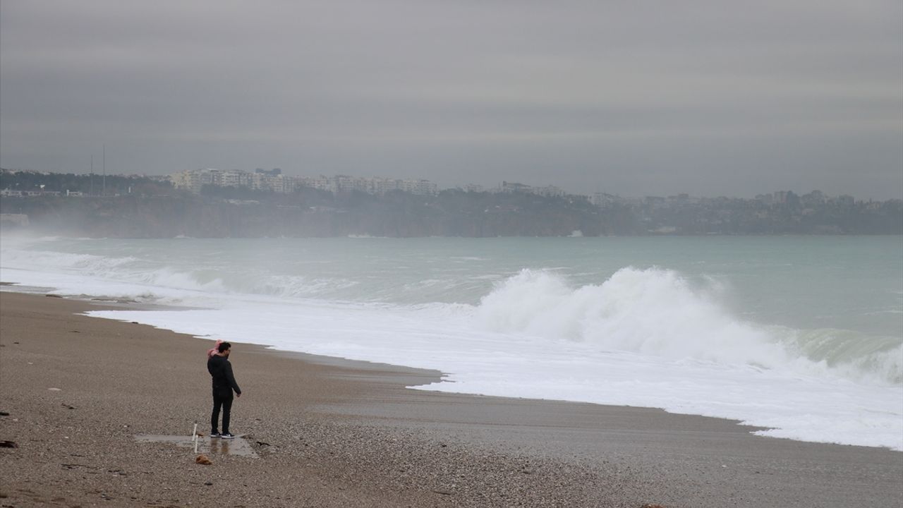 Konyaaltı Sahili'nde dalgalar oluştu. Olumsuz hava koşullarına rağmen bazı turist ve vatandaşlar, sahil bandında yürüyüş yaptı, dalgaları görüntülemeye çalıştı.