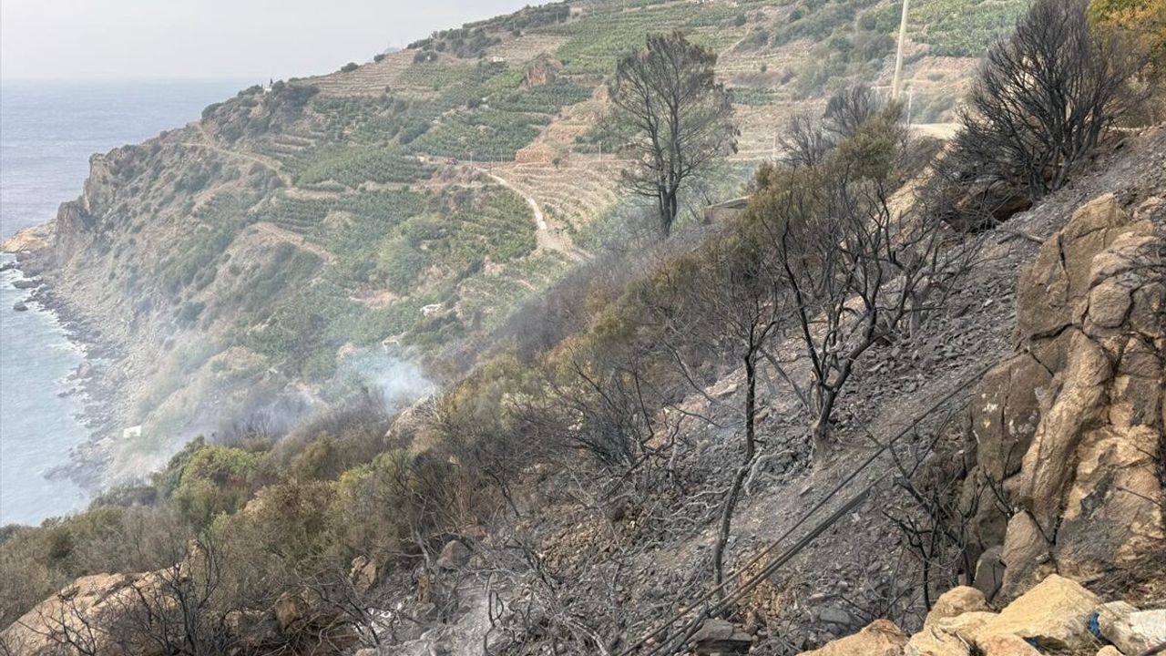 Ekiplerin, rüzgarın da etkisiyle yayılan alevlere müdahale ederek söndürdüğü yangında 50 dekar muz bahçesi zarar gördü.