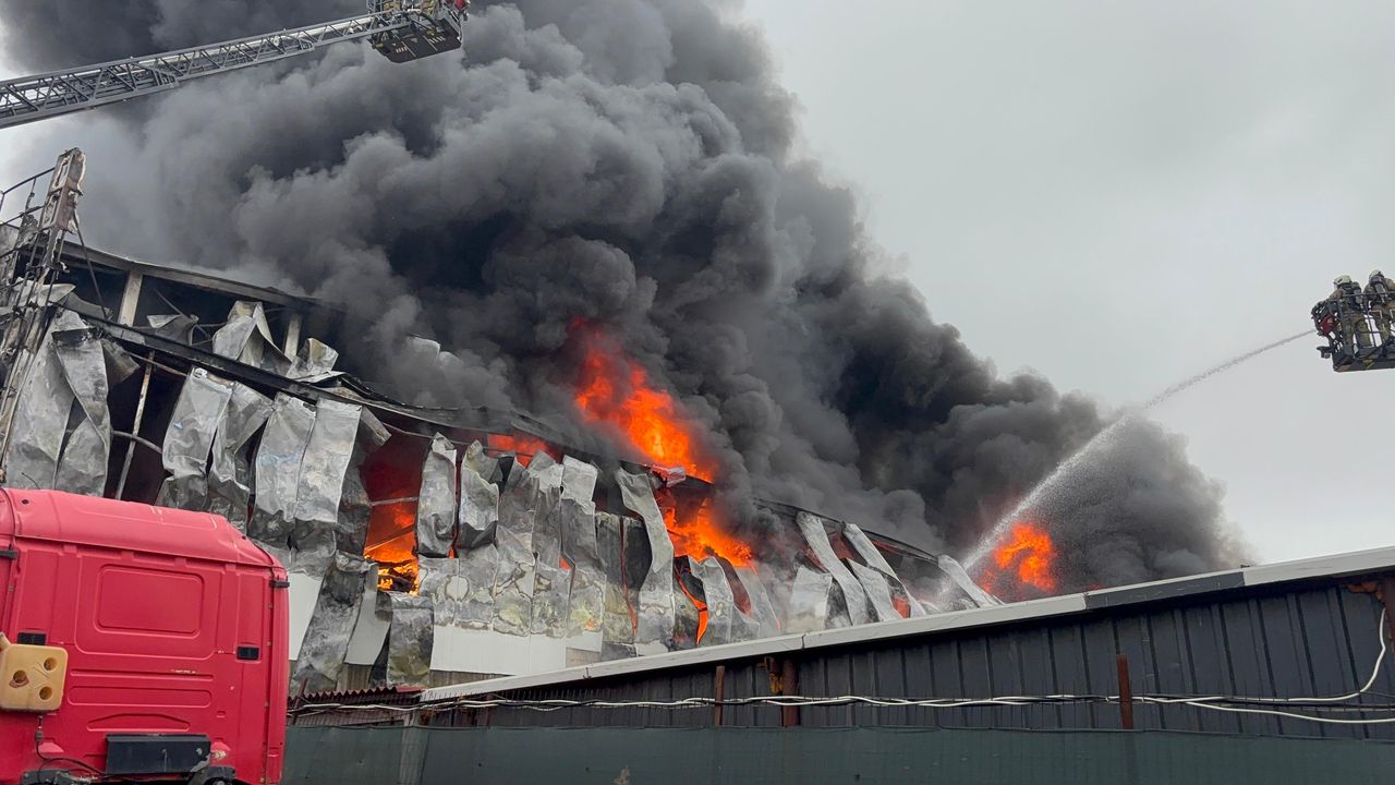 Alevlerin yükseldiği ve yoğun duman oluşan yangına, ekiplerin müdahalesi sürüyor.