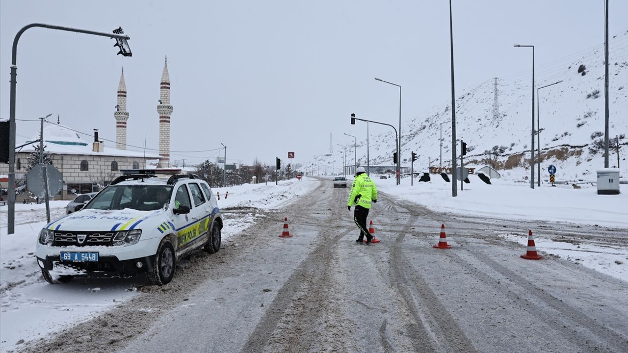 Bayburt-Erzurum kara yolu güzergahındaki Kop Dağı Geçidi'nde, gece boyunca yoğun kar yağışı etkili oldu.