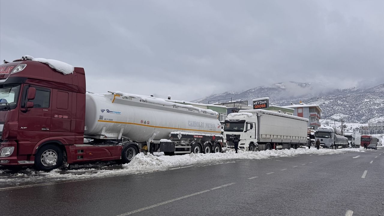 Açıklamada, 'Pazarcık/Narlı-Gaziantep Yolu, kamyon ve çekici (tır) cinsi araçlara her iki yönde trafiğe kapalı olup, kar lastiği olan otobüsler ile diğer araçlara izin verilmektedir. Kamyon ve çekici (tır) türü araçlar belirlenen alanlarda bekletilmektedir.' ifadelerine yer verildi.
