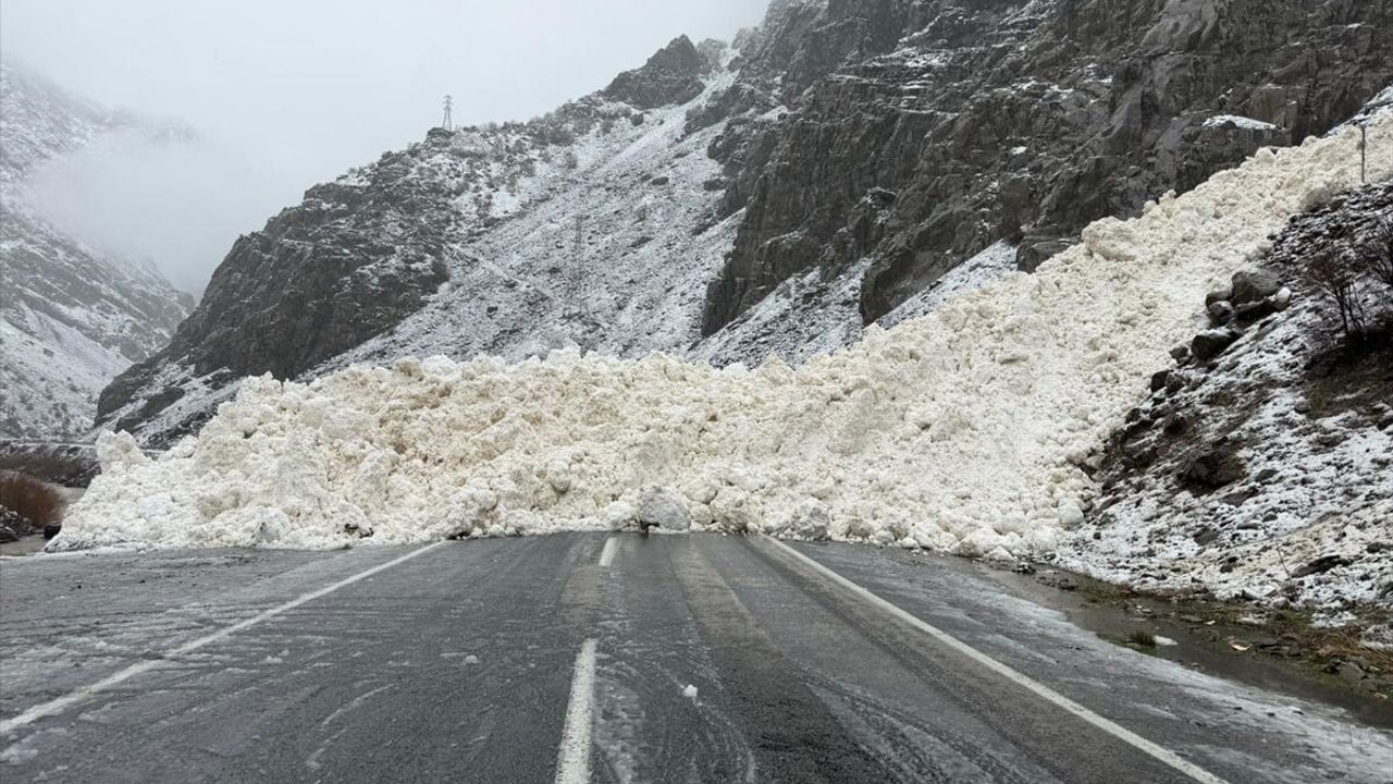 İki günden bu yana karla karışık yağmurun etkili olduğu kentte, Çukurca kara yolu Taşbaşı köyü yakınında çığ düştü.