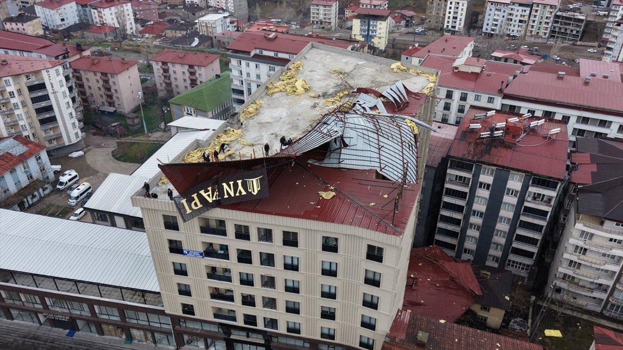 Can kaybı ya da yaralanmanın yaşanmadığı olayda, çatının büyük bölümü binanın yanına düştü.