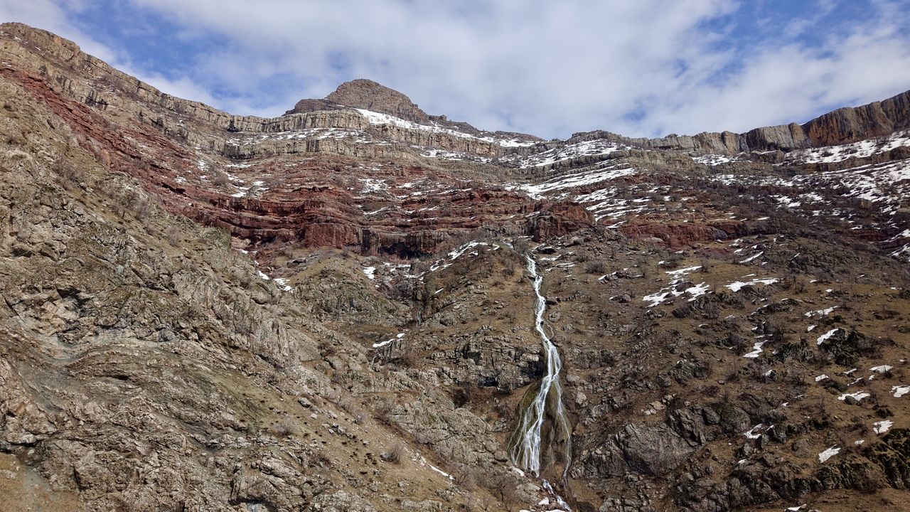 Metrelerce yükseklikteki sarp kayalıklardan süzülen şelale, dron ile görüntülendi.