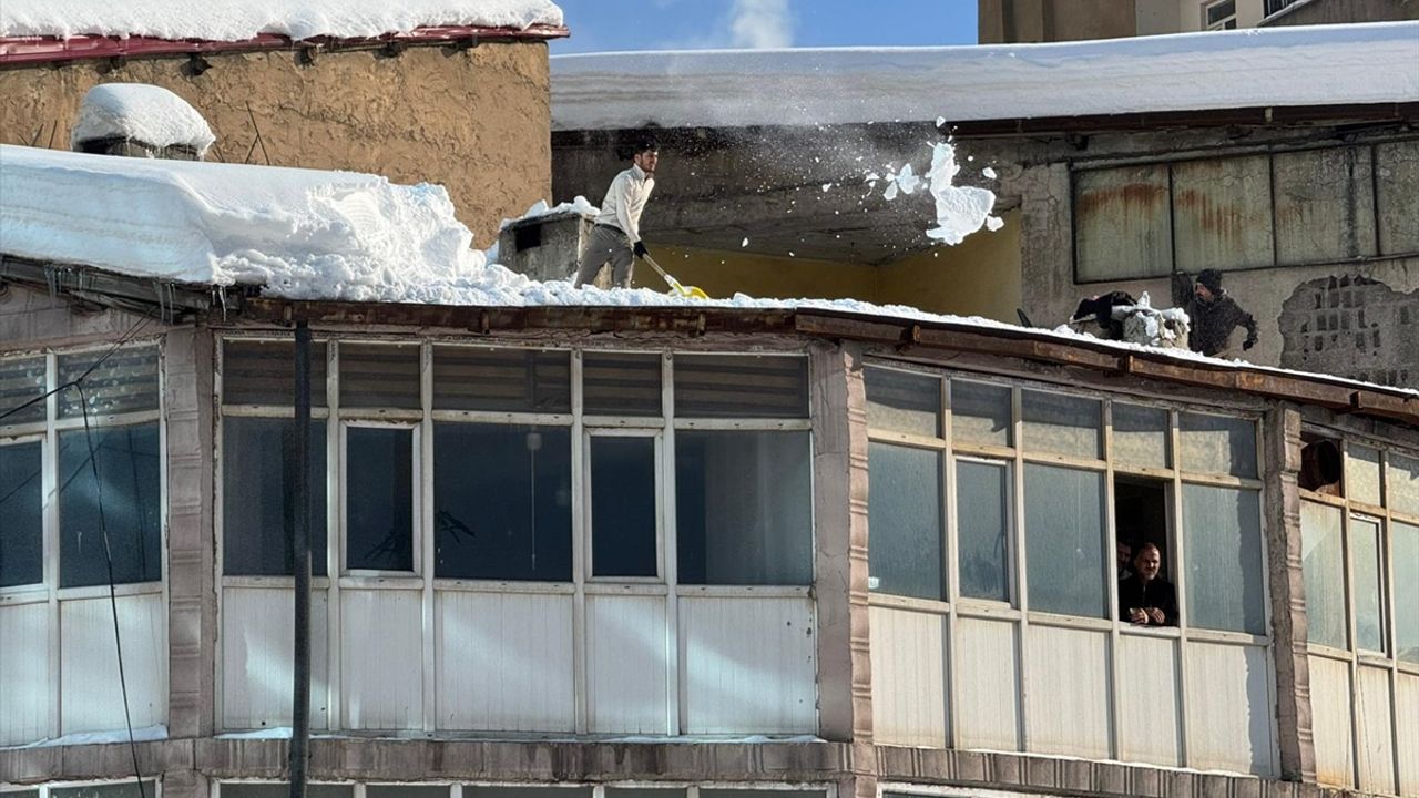HAKKARİ (AA) - Hakkari'nin Yüksekova ilçesinde vatandaşlar, yoğun yağış sonucu ev ve iş yerlerinin çatılarında biriken karı temizledi.