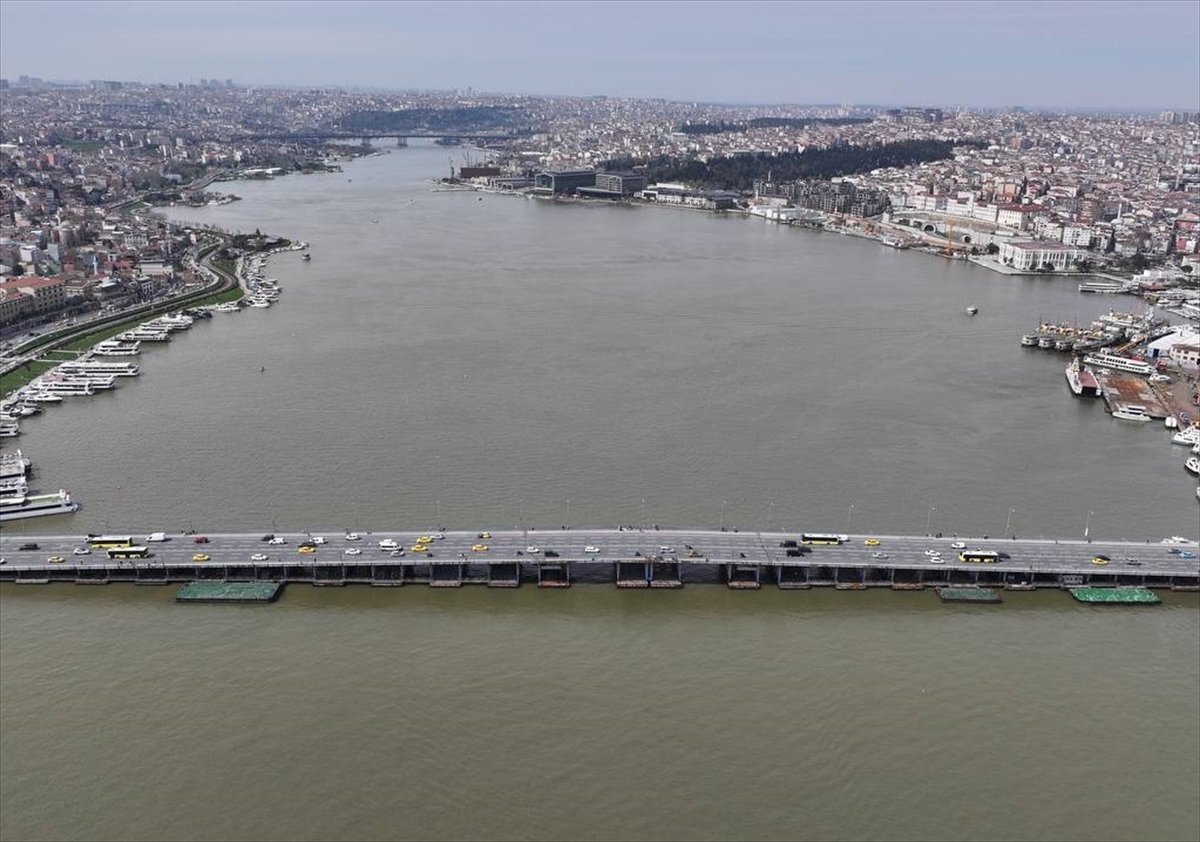 Bir kısmı kahverengiye dönen Haliç'teki suyun renk değişimi dronla görüntülendi.