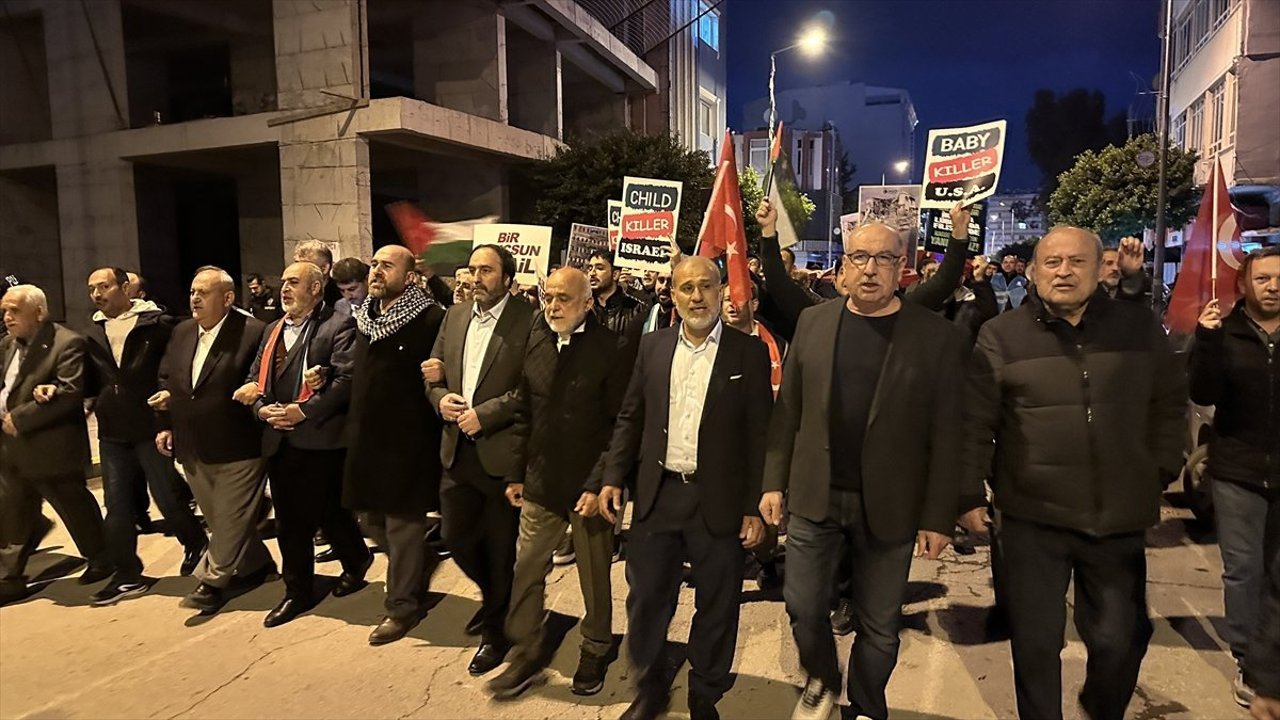 HATAY (AA) - Hatay'ın İskenderun ilçesinde İsrail'in Filistin'e yönelik saldırılarına tepki amacıyla yürüyüş düzenlendi.