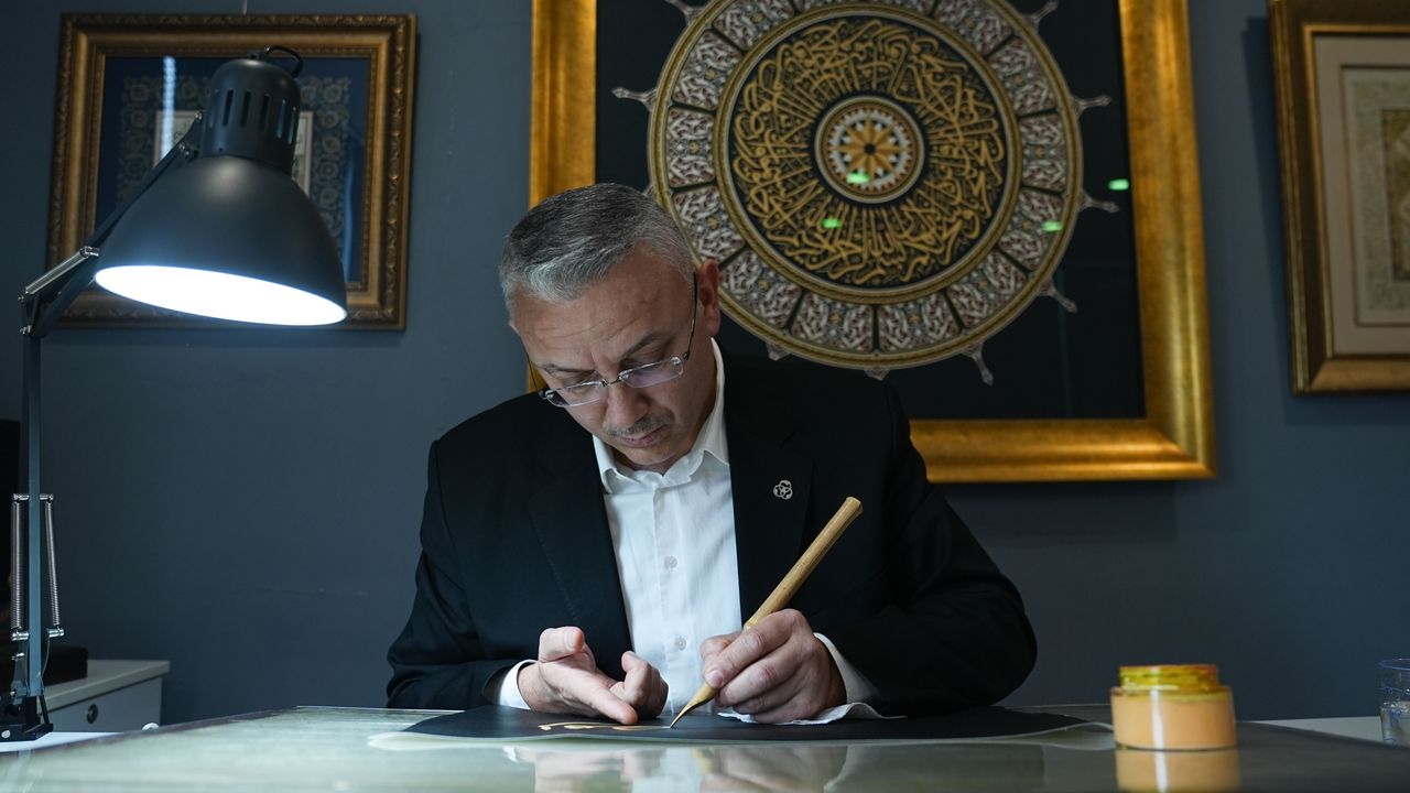 Hattat Ferhat Kurlu, AA muhabirine, hat sanatına Samsun 19 Mayıs Üniversitesi'nde öğrenciyken seçmeli ders alarak başladığını ve 26 yıldır bu işi sürdürdüğünü söyledi.