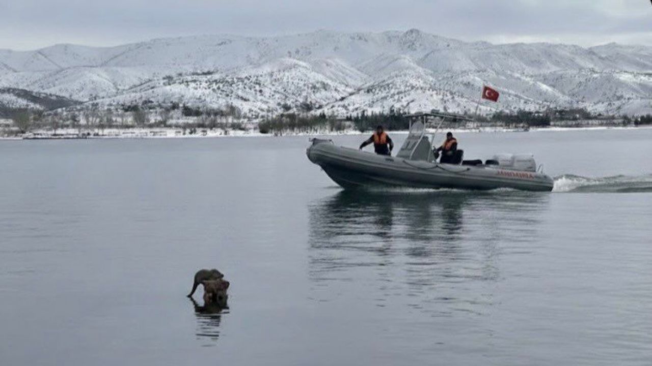 İl Jandarma Komutanlığı bünyesindeki asayiş botu ile 82 kilometrekare yüzey alanı ve 56 kilometrelik kıyı şeridine sahip Hazar Gölü'nde koruma ve kontrol faaliyeti yürüten jandarma ekipleri, küçük bir bölümü göl yüzeyinde bulunan bir batığın üzerinde su samuru olduğunu fark etti.