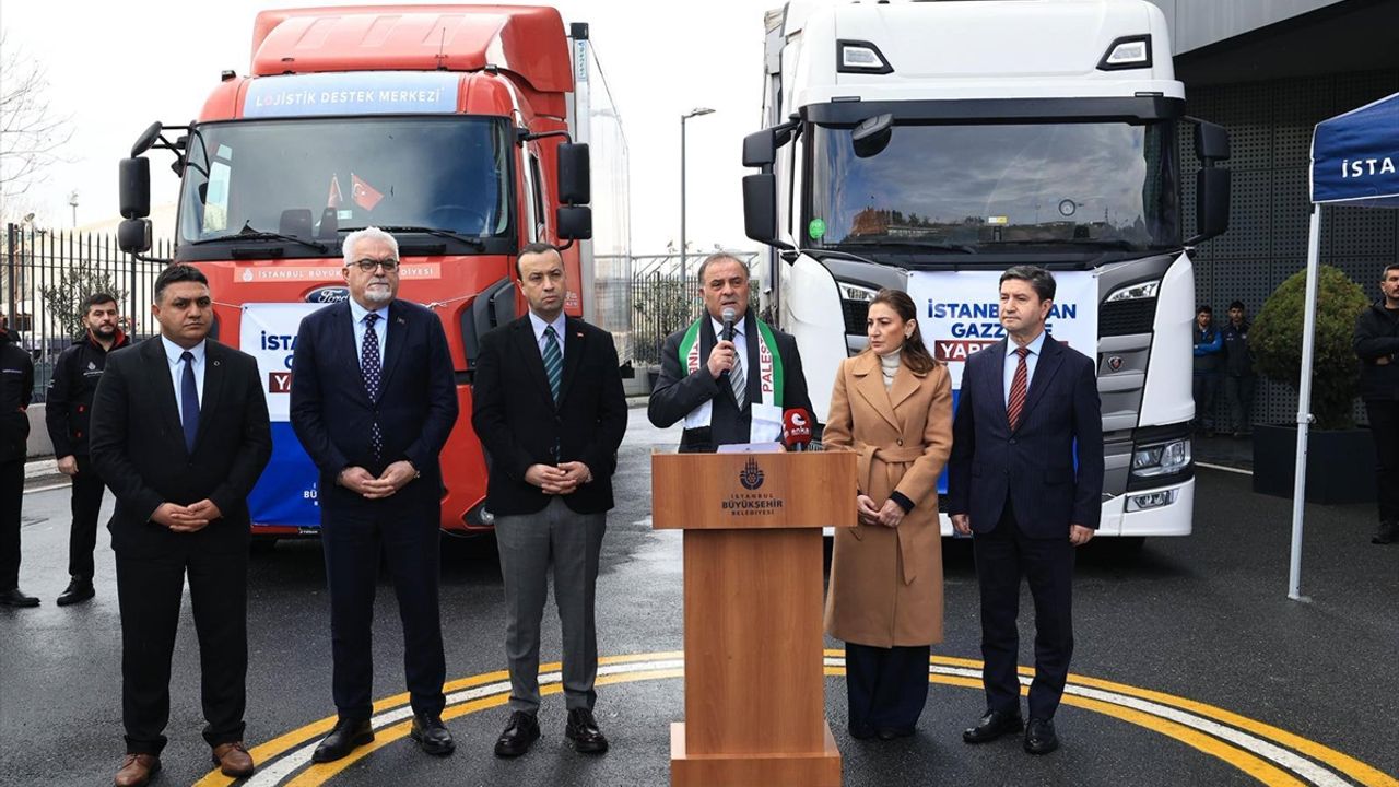 Konuşmanın ardından Gazze'deki sivillerin acil ihtiyaçlarına destek için İBB koordinasyonunda hazırlanan yardım tırları, Türk Kızılay'ı aracılığıyla bölgeye gönderilmek üzere yola çıktı.
