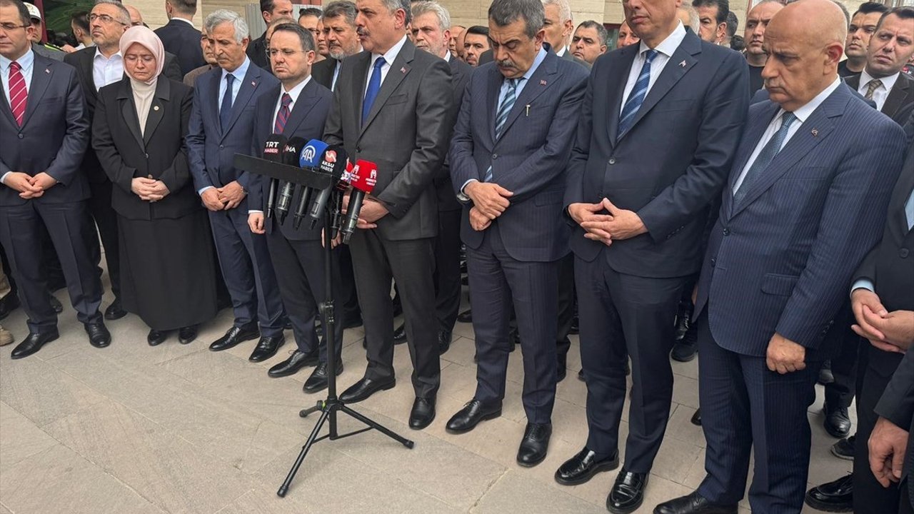 'Aziz milletimize başsağlığı diliyorum. Şu anda hastanelerde tedavileri devam eden bütün yaralılarımıza da Cenabıhak'tan acil şifalar diliyorum. Olayın haberini almamızla beraber Sayın Milli Eğitim Bakanı'mızla, Sağlık Bakanı'mızla, Adalet Bakanı'mızla hemen olay yerine intikal ettik. Aile Bakanı'mız da yolda şu anda, o da gelecek. Sayın milletvekillerimiz burada. Sayın Cumhurbaşkanı'mızı da sürecin, olayın başından itibaren anbean bilgilendirdik.