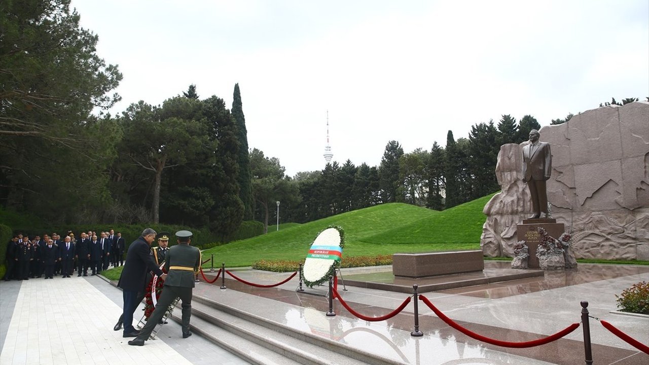 Bakan Çiftçi, önce merhum Cumhurbaşkanı Haydar Aliyev'in kabrinin bulunduğu Fahri Hıyaban'ı ziyaret ederek anıt mezara çelenk bıraktı.