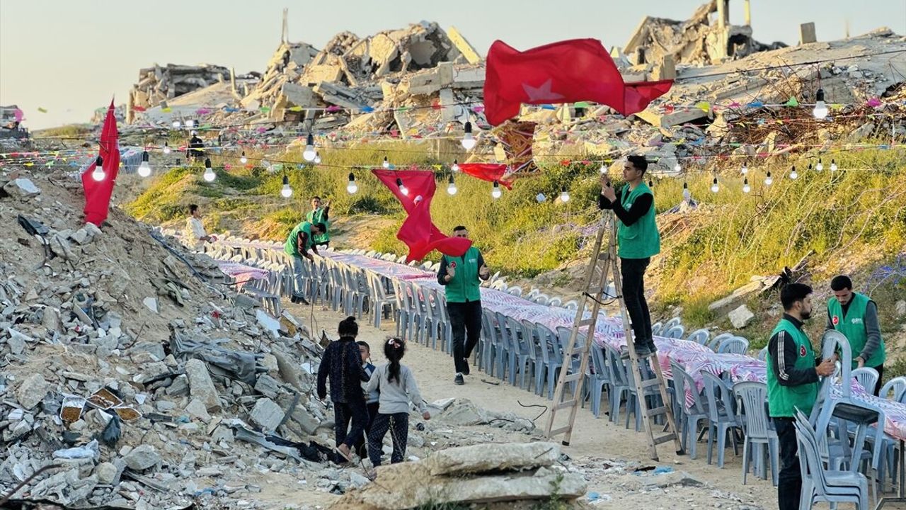 Federasyondan yapılan açıklamaya göre, İDDEF ekipleri, ramazan çalışmaları kapsamında Gazze'de yüzlerce kişilik iftar organizasyonları düzenliyor.
