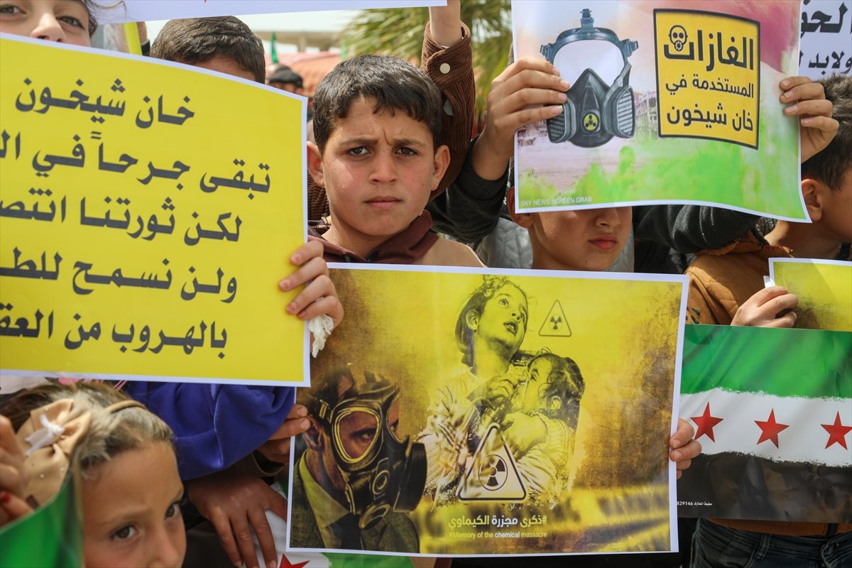 ŞAM (AA) - Suriye'nin İdlib iline bağlı Han Şeyhun ilçesinde, Beşşar Esed rejiminin düzenlediği ve en az 100'de fazla kişinin hayatını kaybetmesine neden olan kimyasal saldırının 9. yıl dönümünde, devlet yetkililerinin katılımıyla anma etkinliği gerçekleştirildi.