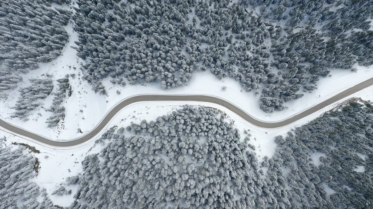 KASTAMONU (AA) - Ilgaz Dağı'nda kar yağışının ardından beyaz örtüyle kaplanan ormanlık alanlar dronla görüntülendi.