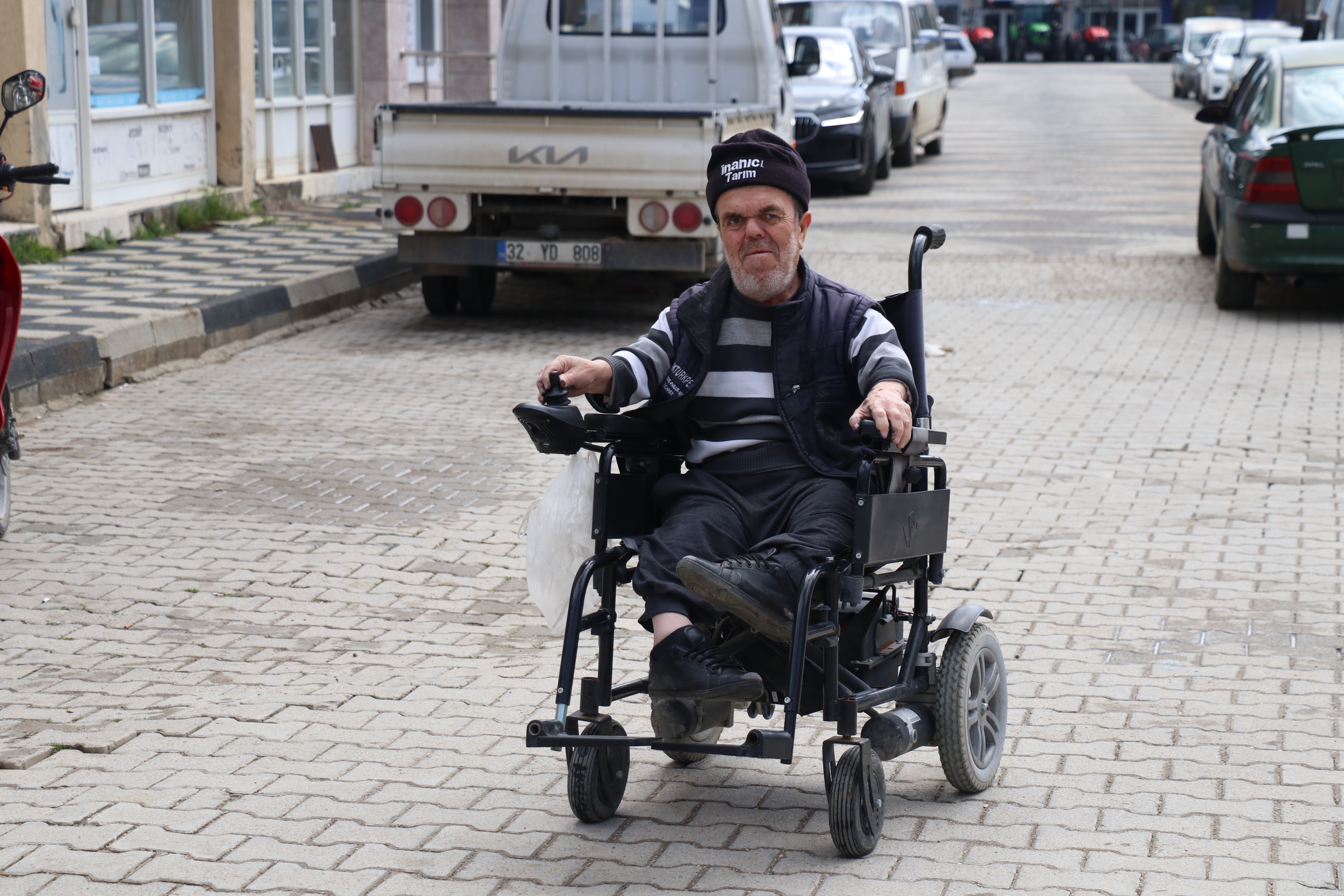 Her sabah akülü aracıyla yaklaşık 2 metrekarelik dükkanına gelen Zorlu, yürüme güçlüğüne rağmen çevredeki esnafın da desteğiyle iş yerini açarak mesaisine başlıyor.