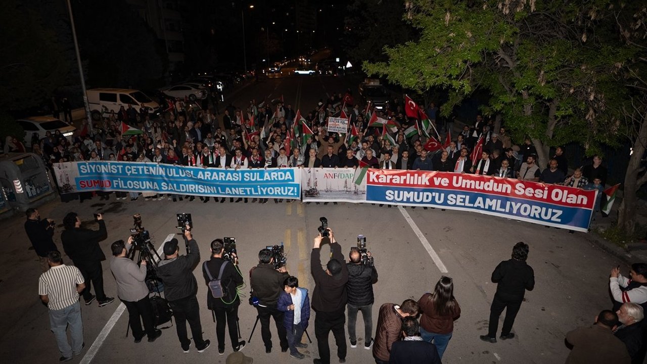 ANKARA (AA) - Ankara Filistin Dayanışma Platformu (ANFİDAP) üyeleri, İsrail ordusunun Gazze'ye insani yardım ulaştırmak amacıyla yola çıkan Küresel Sumud Filosu'na saldırısını protesto etti.