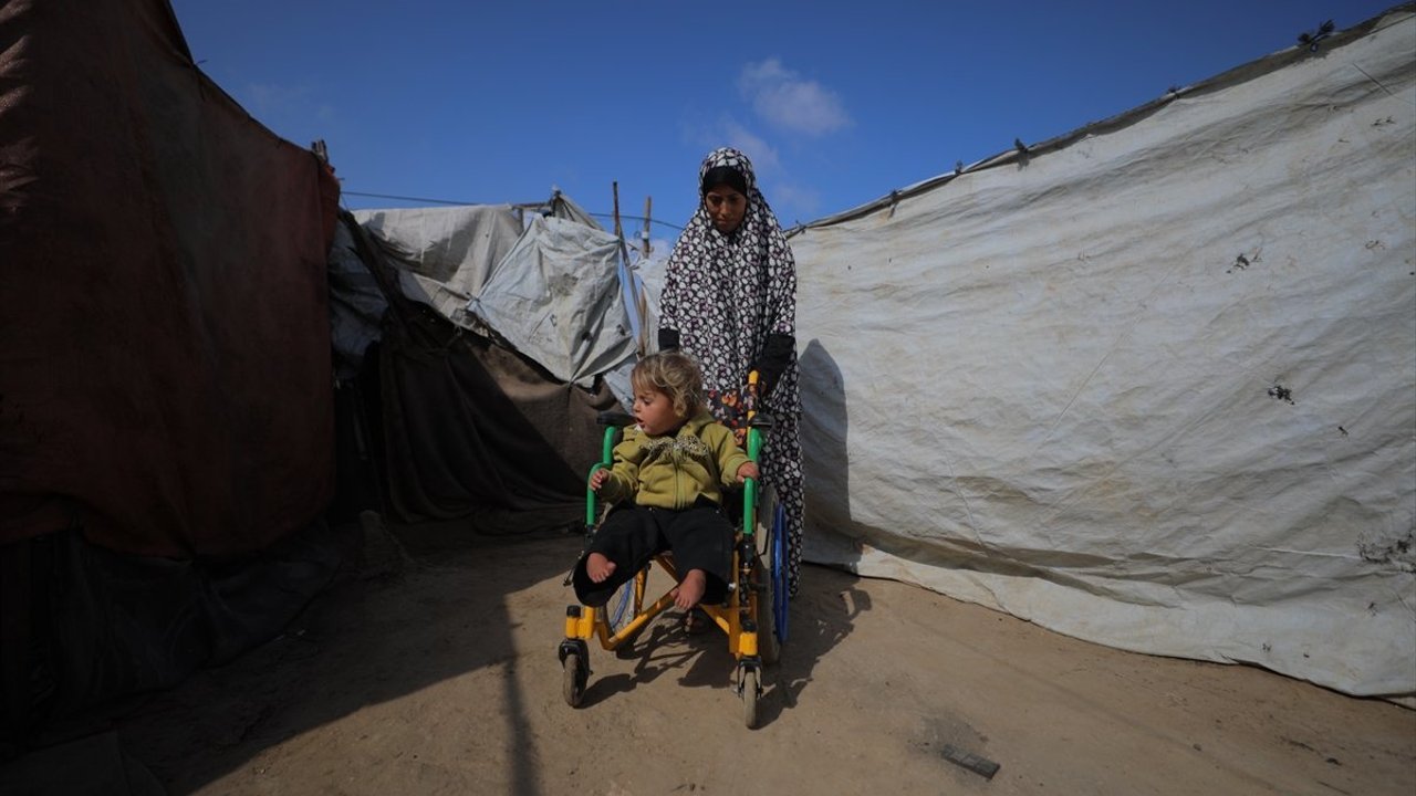 Kızının yaşadığı zorlukları ve savaşın etkilerini dile getiren Filistinli anne, 'Gördüğünüz gibi savaş, açlık ve bir yerden bir yere göç. Yaşadığımız açlık ve zorlukla... Ben kızımla birlikte çok zor şeyler yaşıyorum. O daha küçük bir çocuk, açlığı bile tam anlamıyor ama yine de çok zorlandı.' diye konuştu.