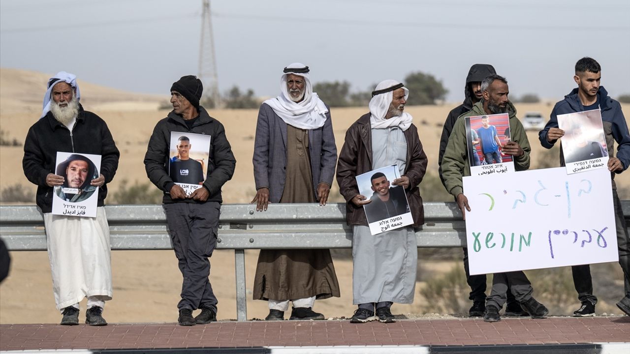 Onlarca Bedevi Arap, İsrail'in güneyindeki Necef Çölü'nde Bi'r Asluc kavşağında toplanarak son dört yılda İsrailli silahlı kişiler tarafından bölgelerinden öldürülen altı kişinin resmini taşıdı.