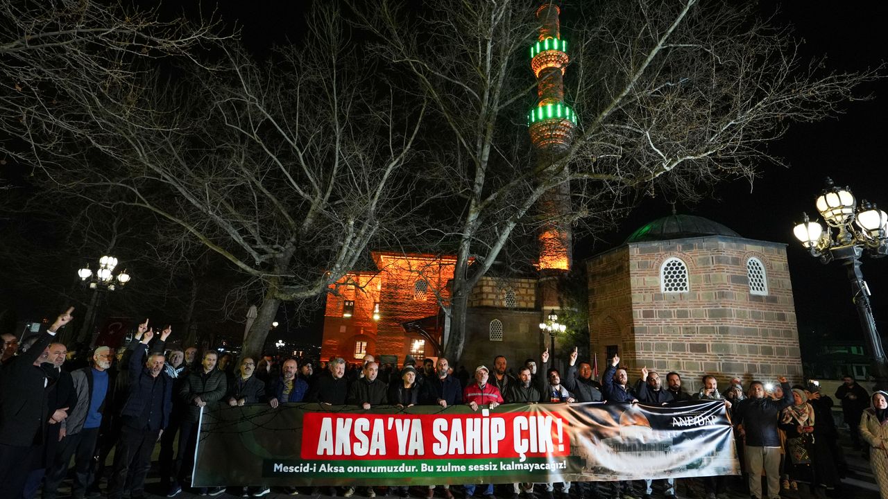 ANFİDAP üyeleri, Hacı Bayram Veli Camisi'nde ramazanın son teravih namazının ardından İsrail'in Mescid-i Aksa'yı ibadete kapatmasına karşı protesto düzenledi.