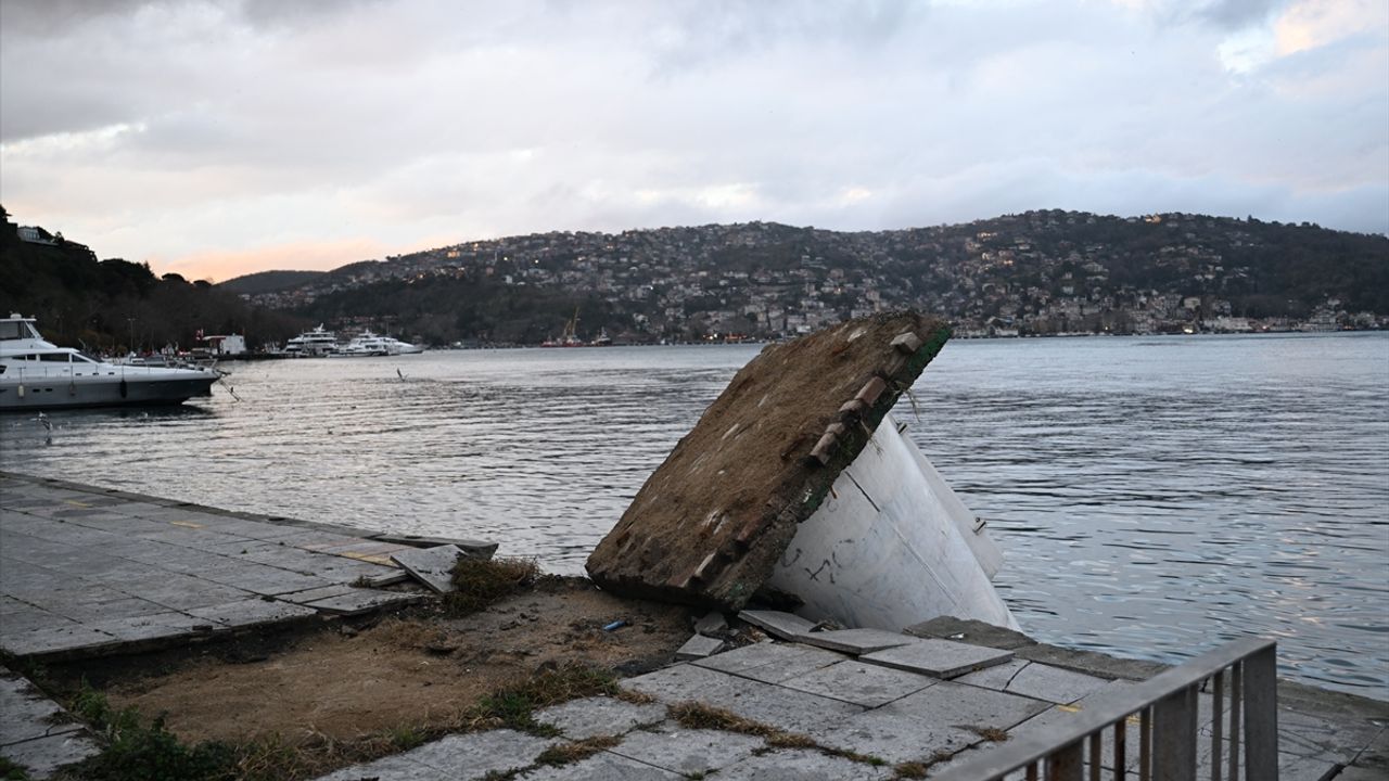 Sarıyer Kireçburnu sahilinde bulunan yaklaşık 10 metre uzunluğundaki deniz feneri, şiddetli rüzgarın etkisiyle devrildi.