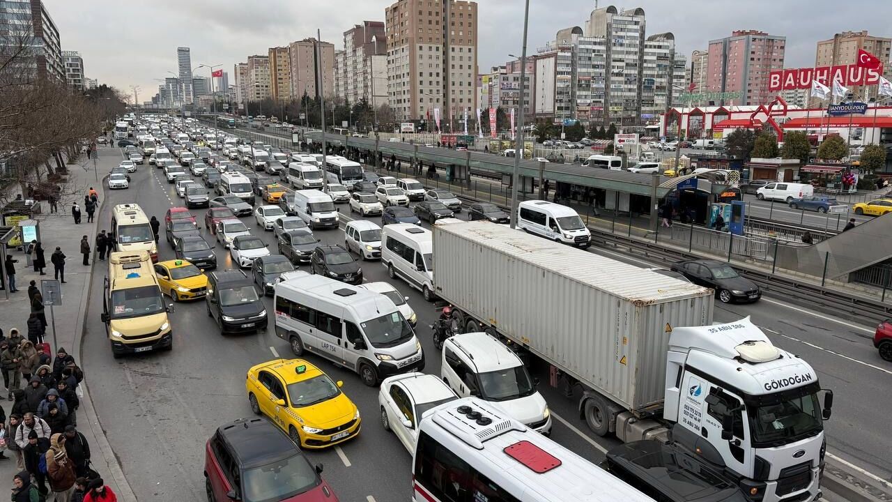 Öte yandan, aktarmaların yapıldığı metrobüs duraklarında da yolcu yoğunluğu gözleniyor.