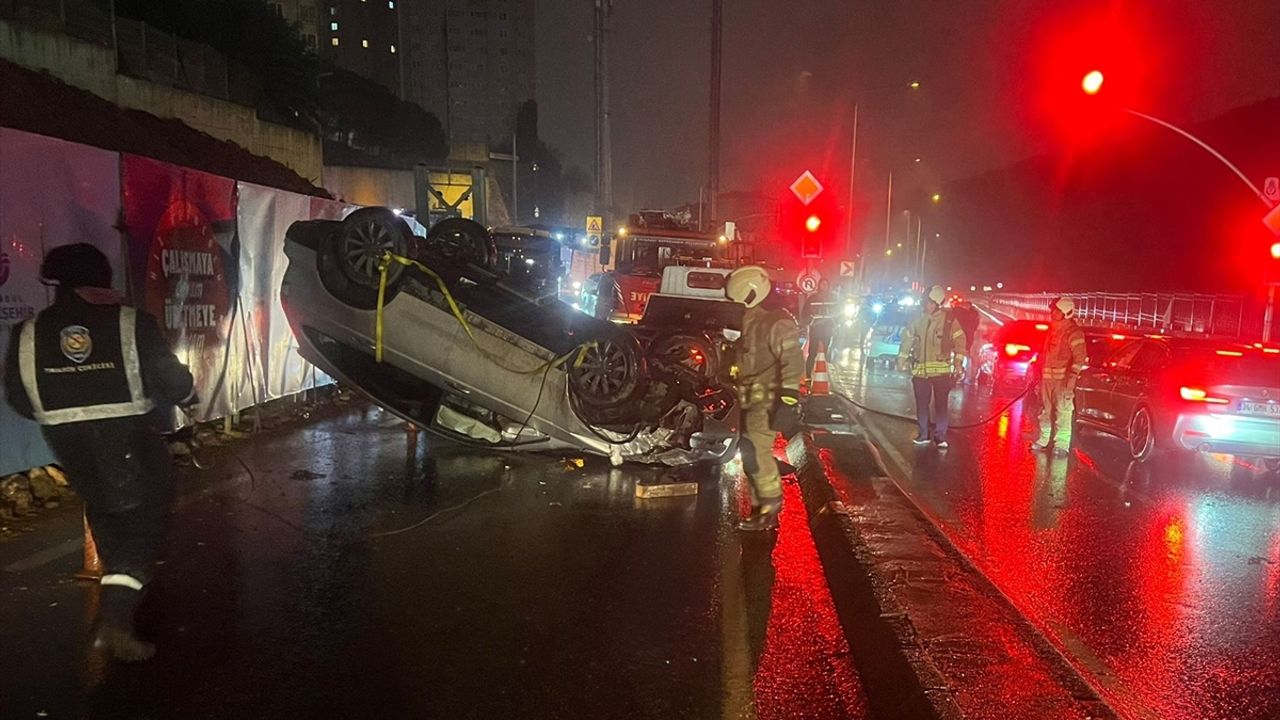 İSTANBUL (AA) - İstanbul genelinde kuvvetli yağmur nedeniyle sürücüler kayganlaşan yolda aracıyla ilerlemekte zorluk çekerken, Maltepe'de bir otomobil takla attı.