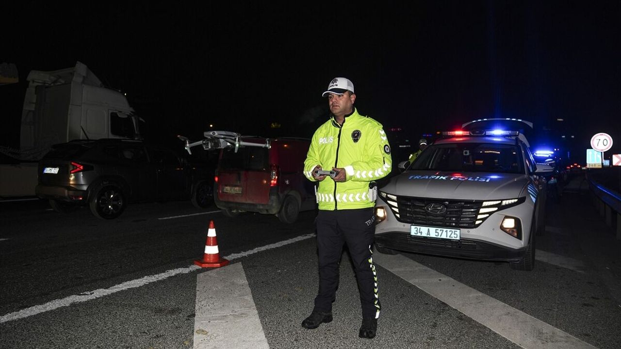 İSTANBUL (AA) - İstanbul'da polis ekipleri sabah saatlerinde trafikte dron destekli taralı alan uygulaması yaptı.