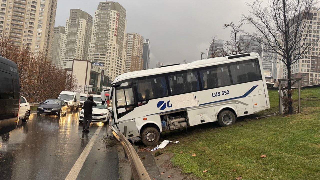 Yağışın etkili olduğu Haremidere bağlantı yolunda D.Ç. idaresindeki 34 LUS 552 plakalı servis midibüsü, bariyerleri aşarak yol kenarındaki toprak alana girdi.