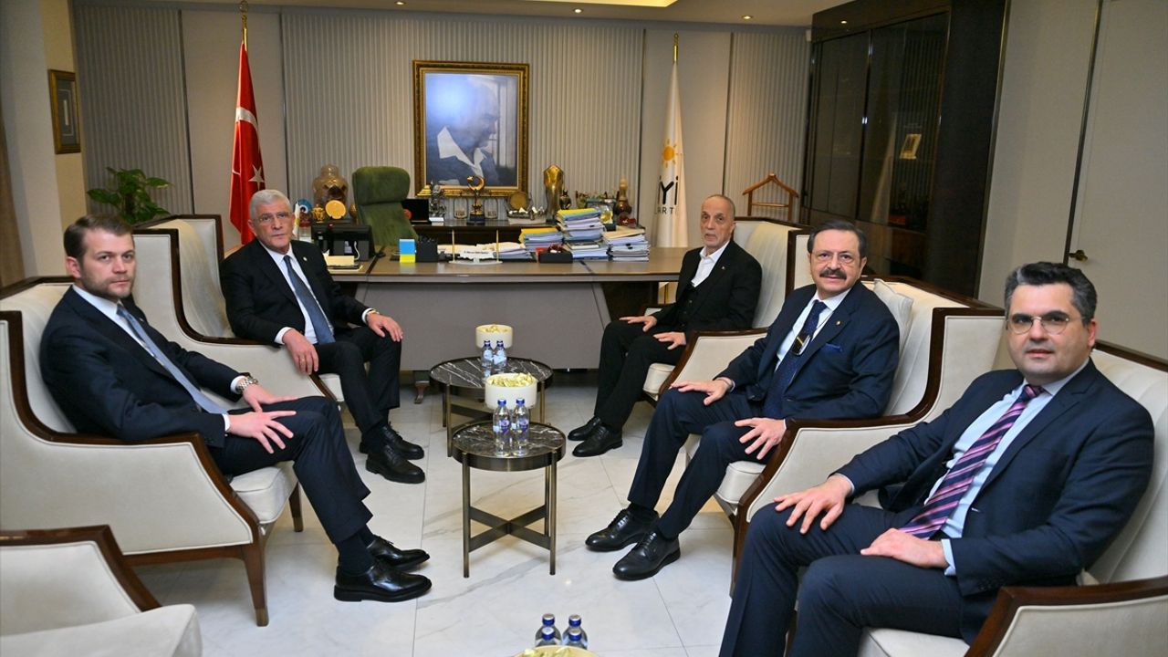 ANKARA (AA) - İYİ Parti Genel Başkanı Müsavat Dervişoğlu, TÜRK-İŞ Genel Başkanı Ergün Atalay ve TOBB Başkanı Rifat Hisarcıklıoğlu ile bir araya geldi.
