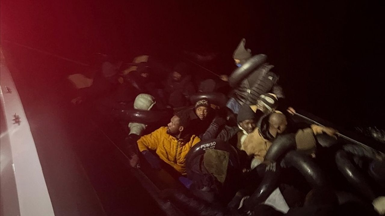 Ekiplerce durdurulan lastik bottaki 7'si çocuk 50 düzensiz göçmen yakalandı.
