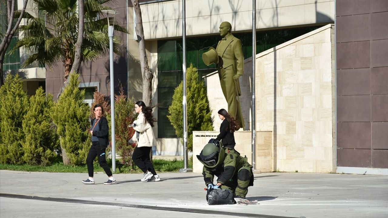 İZMİR (AA) - İzmir Bölge Adliye Mahkemesinde, 'Sivil Savunma Günü' dolayısıyla bomba ihbar ve kontrollü imha tatbikatı gerçekleştirildi.