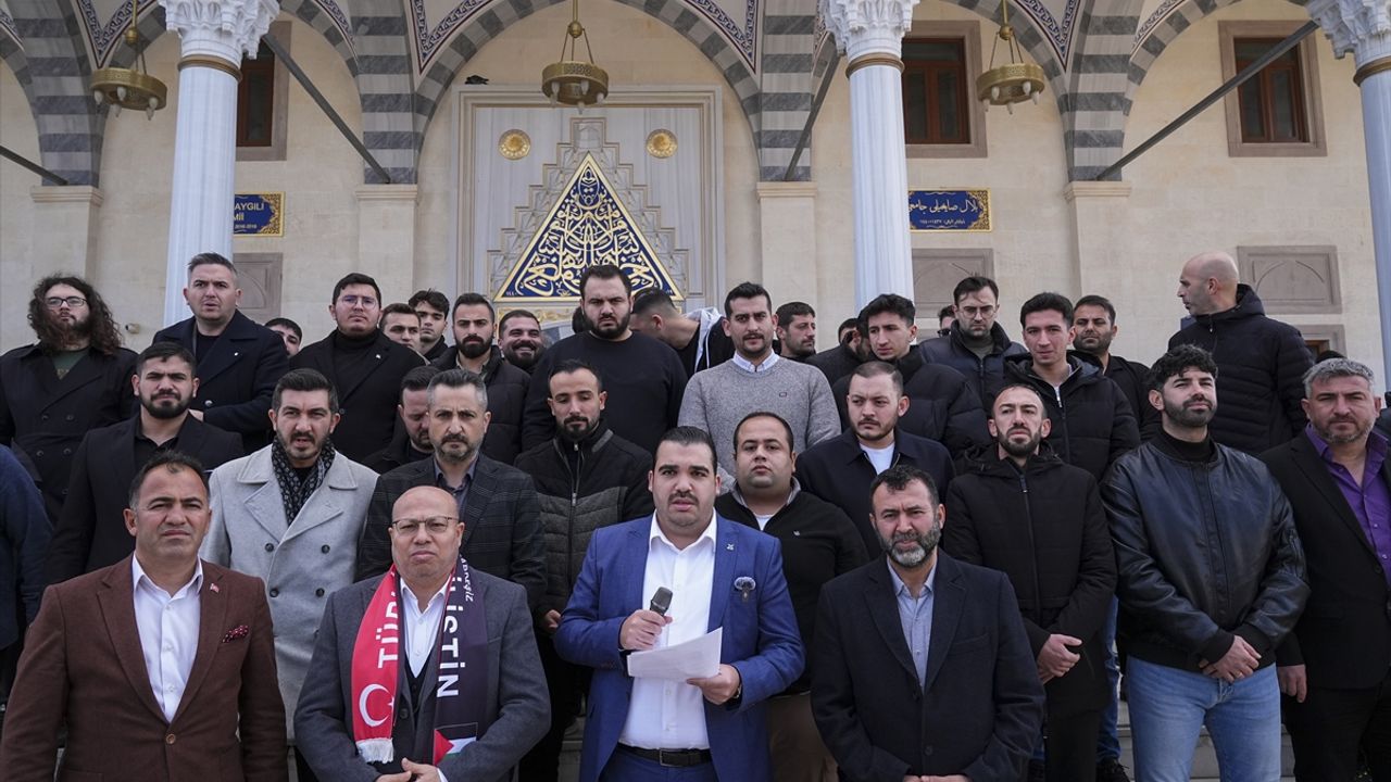 İzmir'de cuma namazı sonrası Bilal Saygılı Camisi önünde toplanan grup adına açıklama yapan TÜGVA İzmir Temsilcisi Yiğit Aslanata, Gazze'de yaşananların tarihe utanç olarak geçecek bir insanlık sınavı olduğunu belirtti.