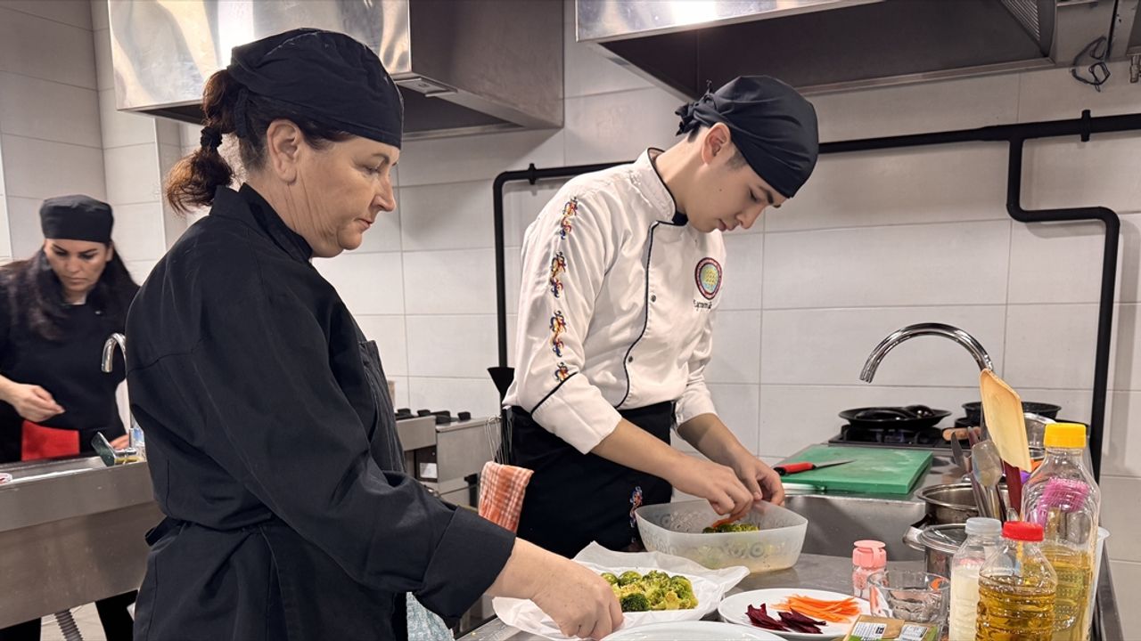 Yiyecek ve içecek bölümü 11 ve 12. sınıfta okuyan 16 öğrenci, anne veya babalarıyla birlikte katıldıkları yarışmada et, sos, sebze ve garnitür içeren özgün yemekler hazırladı.