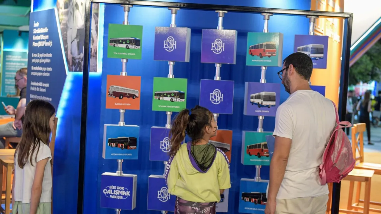İzmir Büyükşehir Belediyesi, 94. İzmir Enternasyonal Fuarı’nda ziyaretçileri hem toplu ulaşım yolculuğuna çıkarıyor hem de projeleri hakkında bilgilendiriyor. Gezici ESHOT Sergisi İzmir’in toplu taşıma geçmişine dair önemli belgeleri, görselleri ve nostaljik detayları ile büyük ilgi görüyor.İZMİR (İGFA) - İzmir Büyükşehir Belediyesi, 94. İzmir Enternasyonal Fuarı’nda toplu taşıma hizmetlerini fuar ziyaretçilerine sunuyor. Belediye Sokağı’nda yer alan İzmir Metro, İZDENİZ, ESHOT Genel Müdürlüğü ve Büyükşehir-TCDD ortaklığıyla işletilen İZBAN stantları büyük ilgi görüyor. Hatlar, seferler, projeler hakkında bilgi alan fuar ziyaretçileri, keyifli aktivitelerle de eğleniyor.