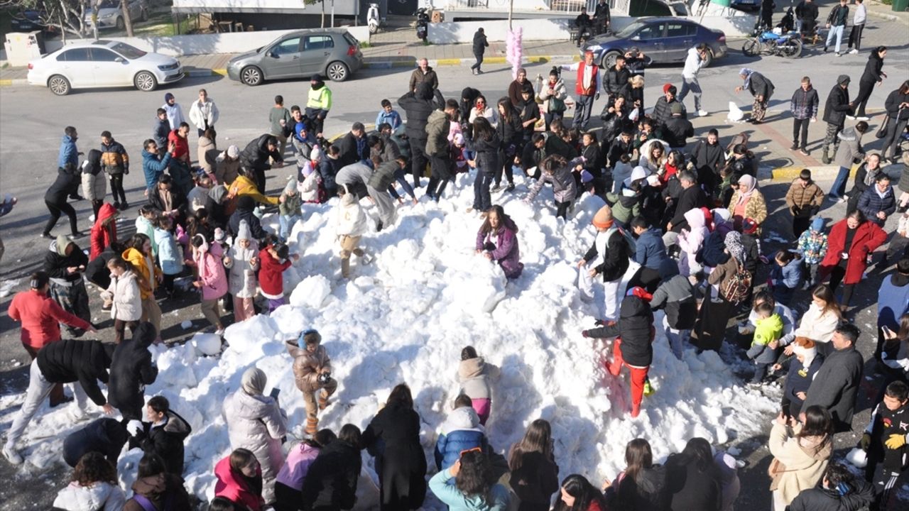 İZMİR (AA) - İzmir'in Bayındır ilçesinde çocukların kar topu oynama talebi, kamyonla getirilen karla karşılandı.