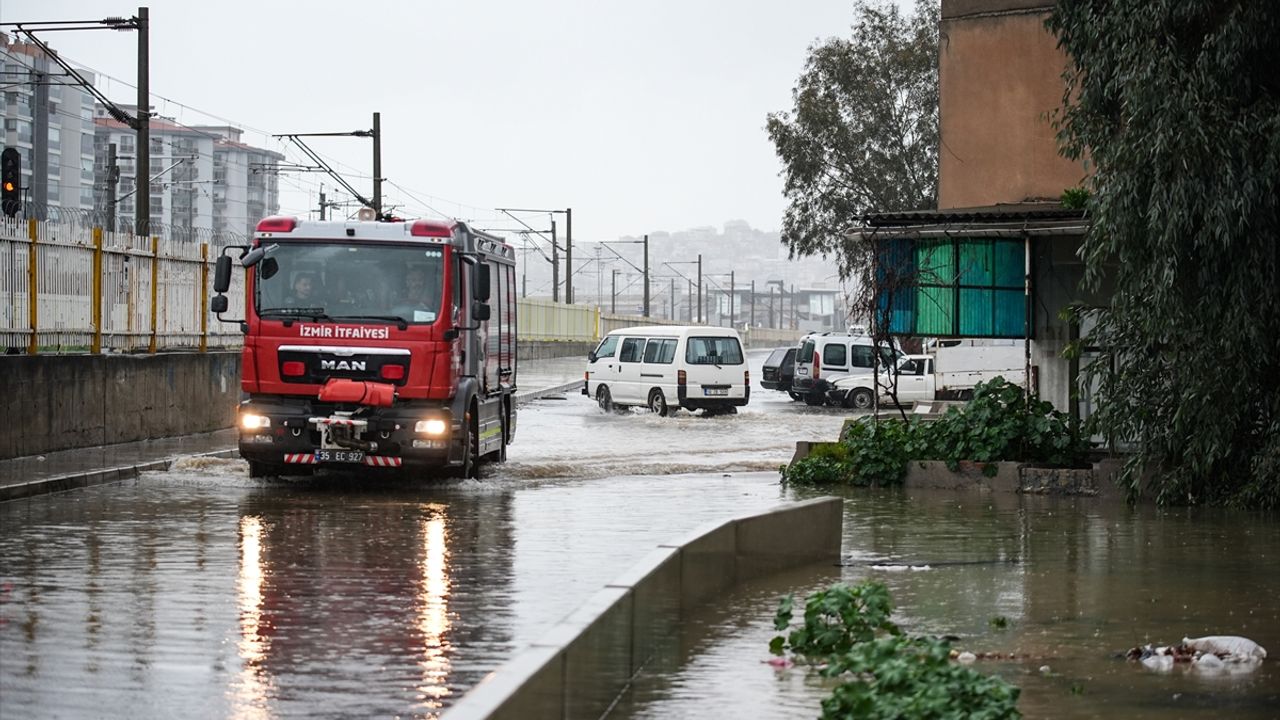İZMİR (AA) - İzmir'de etkili olan sağanak hayatı olumsuz etkiledi.