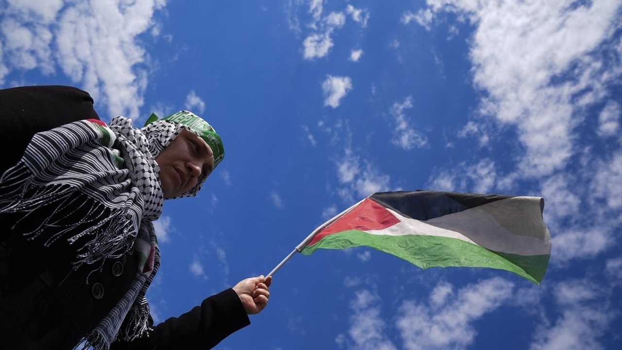 Cuma namazı sonrası Konak Meydanı'nda bir araya gelen grup, İsrail'in Gazze, Lübnan ve İran'daki saldırılarını kınadı, İsrail Parlamentosu tarafından Filistinli esirlere yönelik idam cezasını öngören düzenlemeye tepki gösterdi.