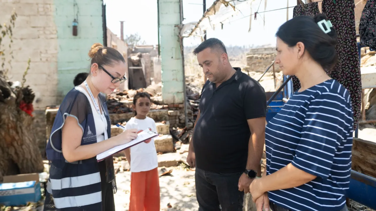 Yangından zarar gören vatandaşlara ulaşmak için harekete geçen Sosyal Hizmetler Dairesi Başkanlığı, saha ekipleriyle ihtiyaç tespitine devam ediyor.