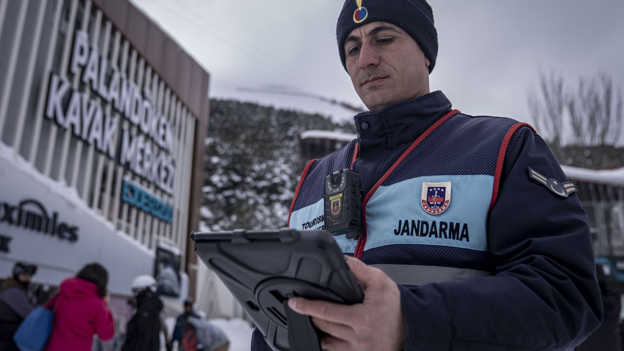 Kış sezonunda yerli ve yabancı binlerce turisti ağırlayan Palandöken'de, güvenlik tedbirleri de üst seviyede tutuluyor.