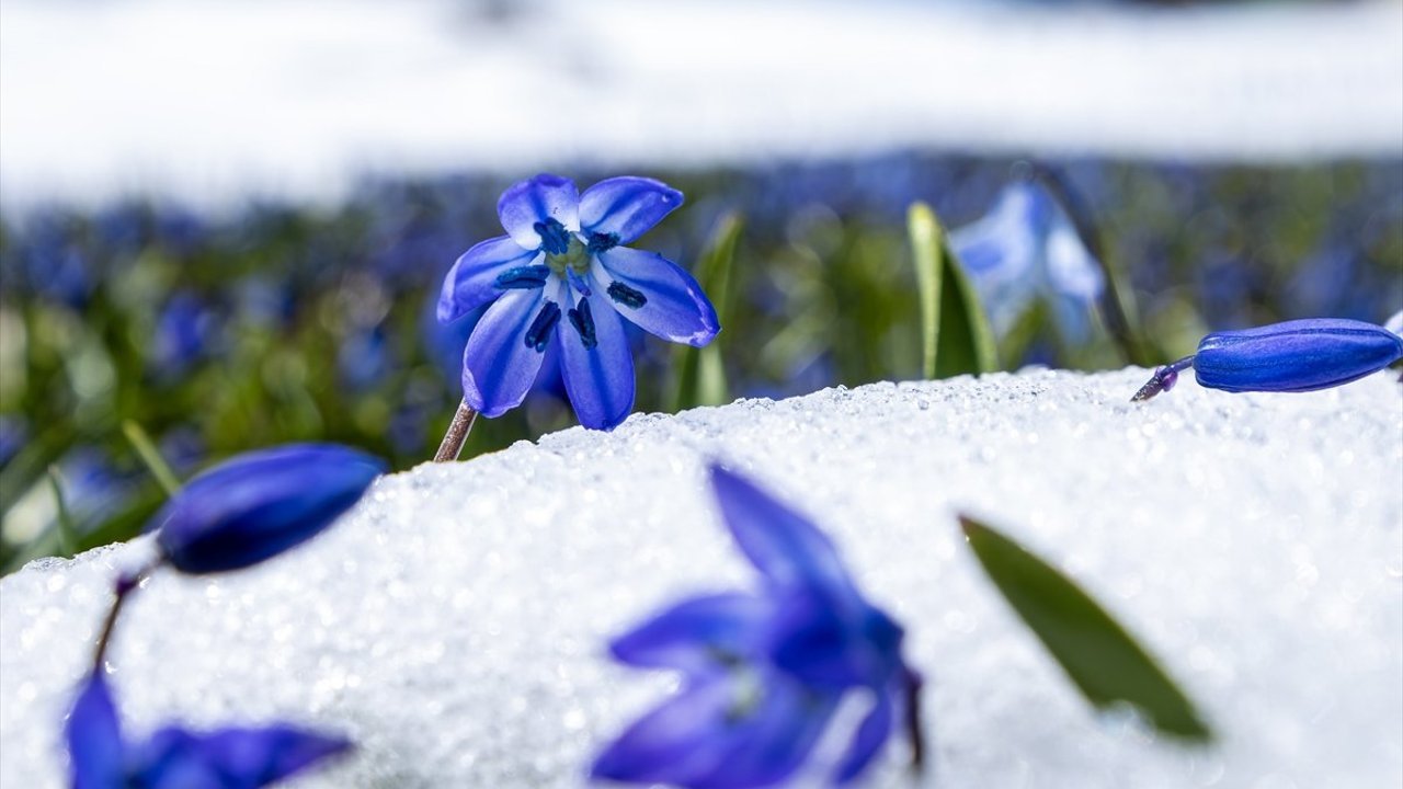 Nisanın ilk haftasından itibaren açmaya başlayan ve bir ay boyunca yaylayı adeta maviye boyayan çiçekler, bu sene kar altında kaldı.