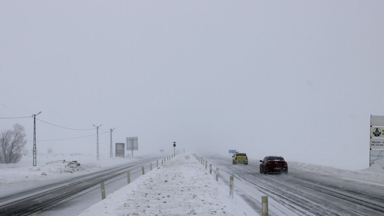 Dün ulaşıma açılan Kağızman-Ağrı kara yolunda yoğun kar ve tipi etkili oldu.